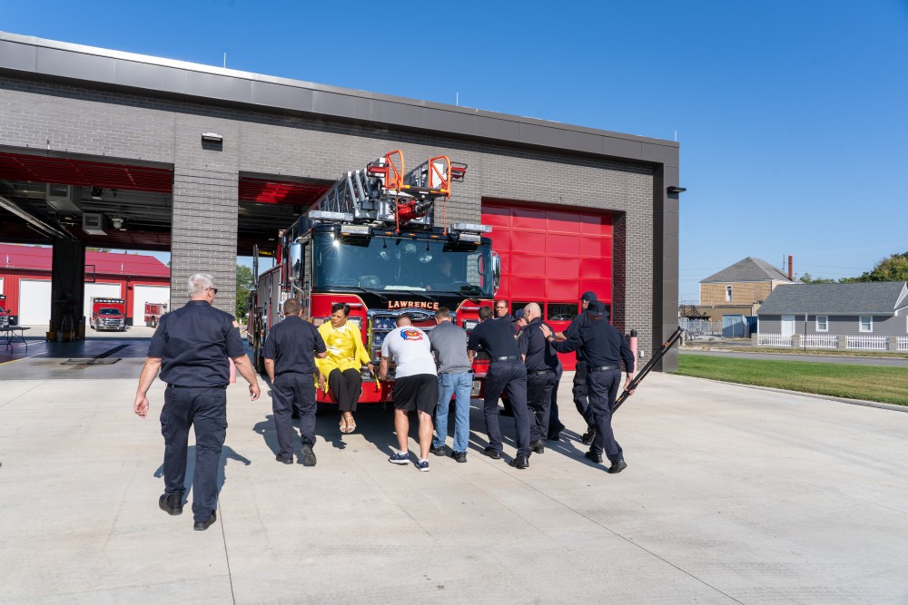The dedication celebrated the teamwork and support that made this addition possible. The City of Lawrence extends its gratitude to community members, City and Fire Department leadership, City Council members, and the Ladder 38 spec committee for their contributions.