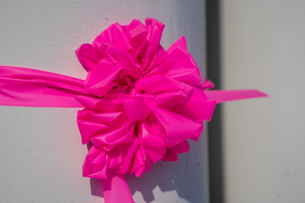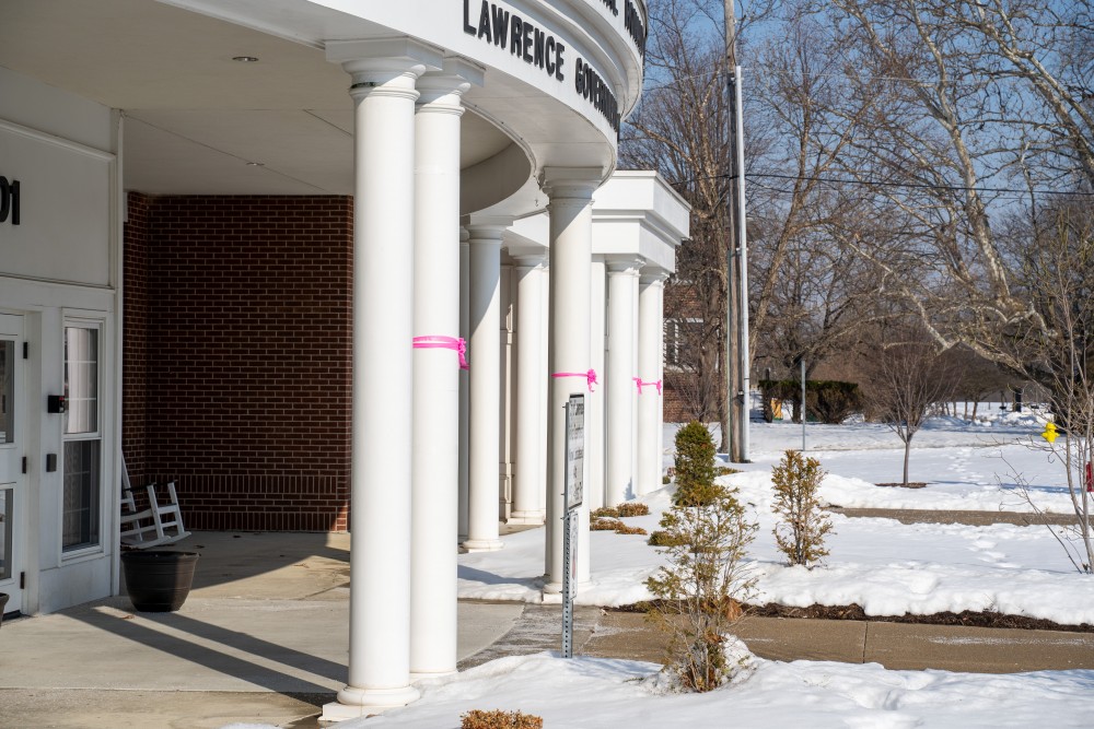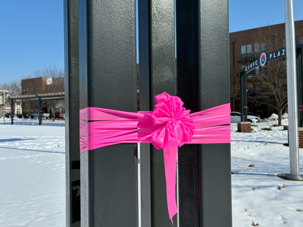 Pink bows have been placed on the columns of the Lawrence Government Center and at Civic Plaza as a visible sign of solidarity and love for Hailey.