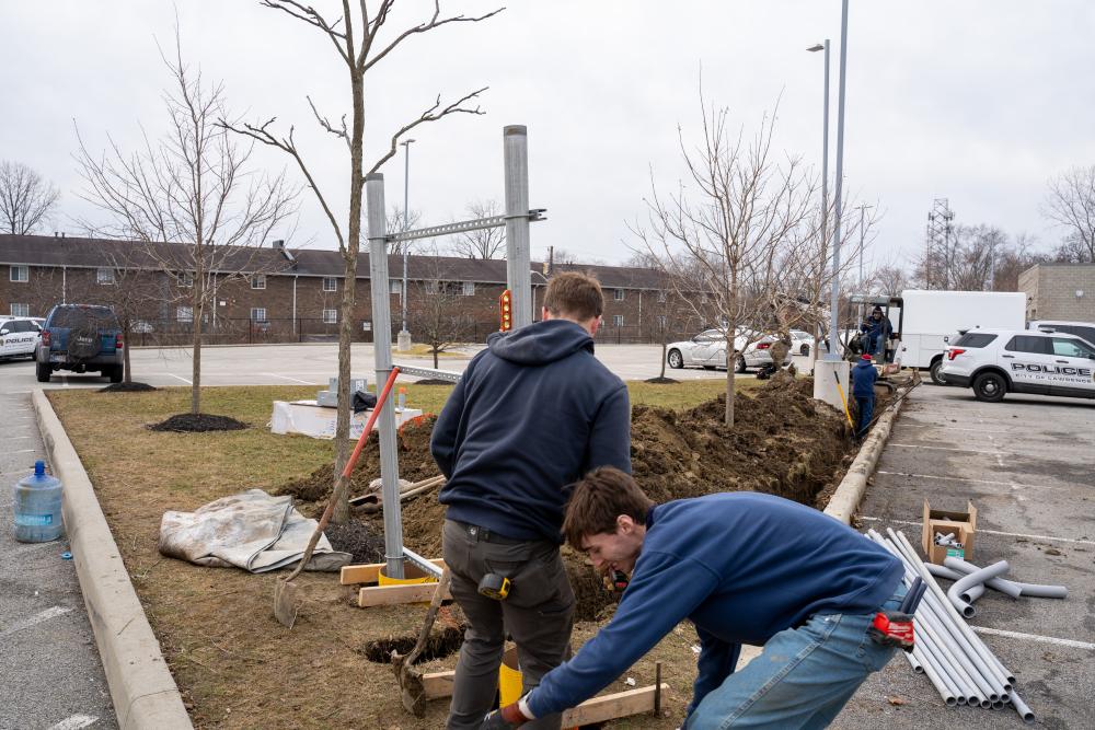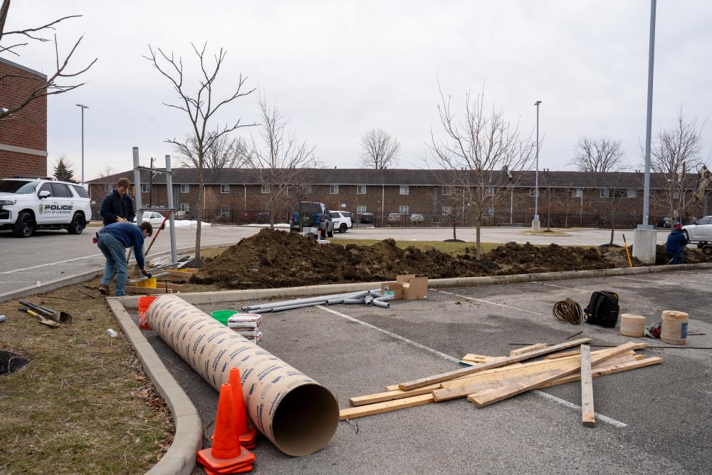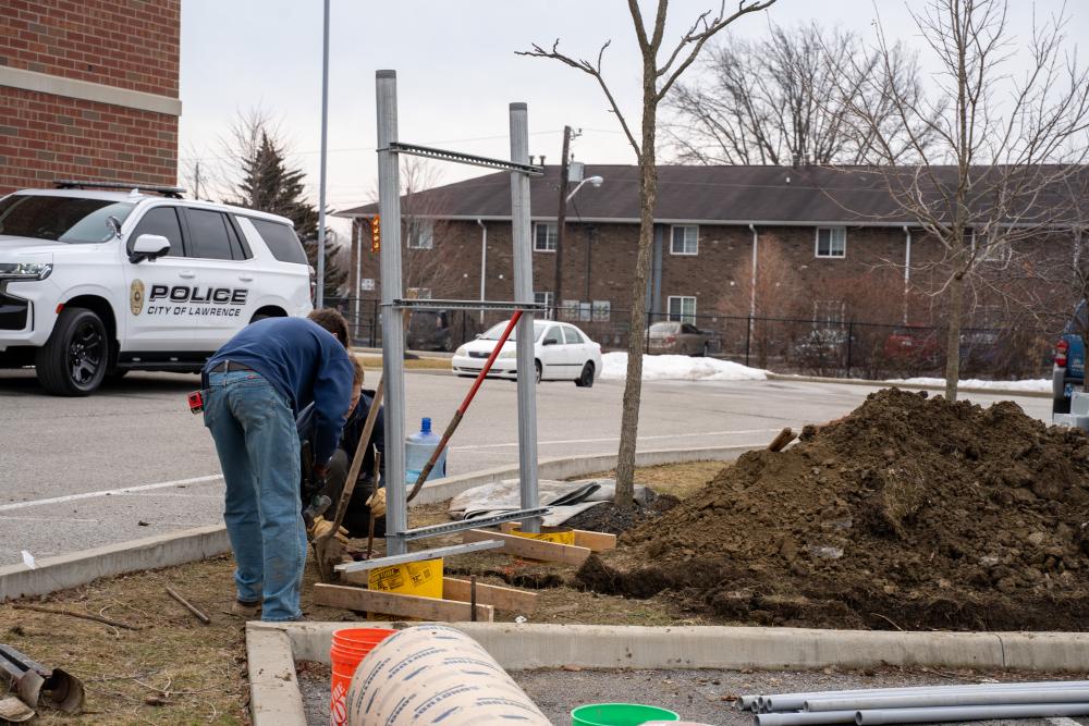Installation of the EV Chargers began this week at the Lawrence Police Department. “We are excited to begin taking meaningful steps toward a more environmentally friendly and cost-effective transportation policy for the City of Lawrence,” stated Mayor Deb Whitfield. “This investment allows us to modernize our public safety fleet infrastructure while being responsible stewards of taxpayer dollars. By incorporating electric vehicle technology into our operations, we are reducing long-term fuel and maintenance costs, supporting cleaner air, and positioning Lawrence as a forward-thinking community committed to sustainability and innovation.”