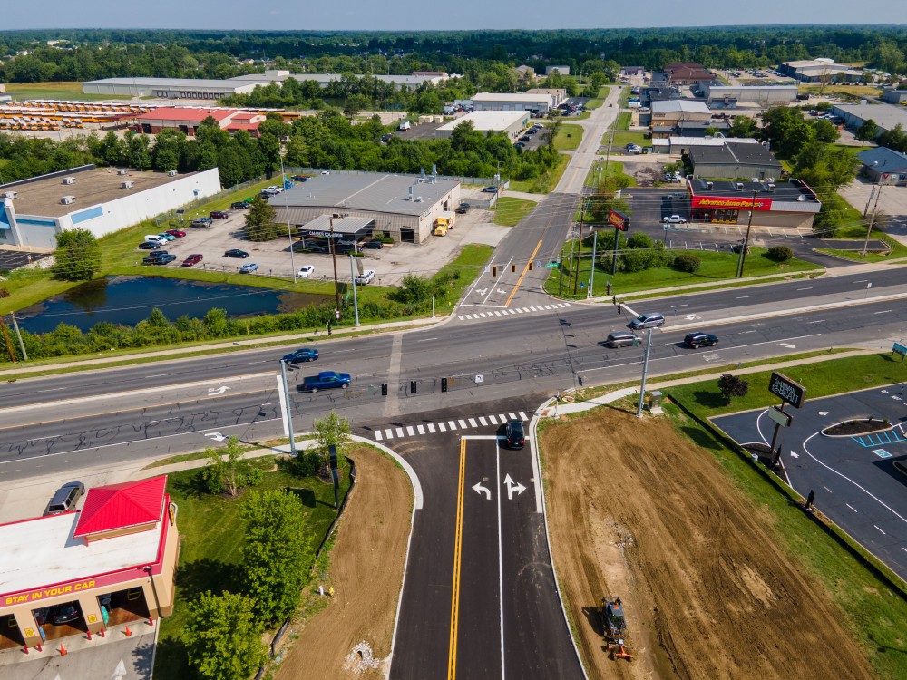 This project, led by the Indiana Department of Transportation (INDOT), is part of a broader effort to enhance safety and connectivity along Pendleton Pike (also designated as U.S. 36 and State Road 67) in Marion County. Improvements at this intersection include the installation of a new traffic signal and the construction of a connector road south of the intersection. These upgrades are designed to improve traffic flow and provide safer, more convenient access to nearby businesses.