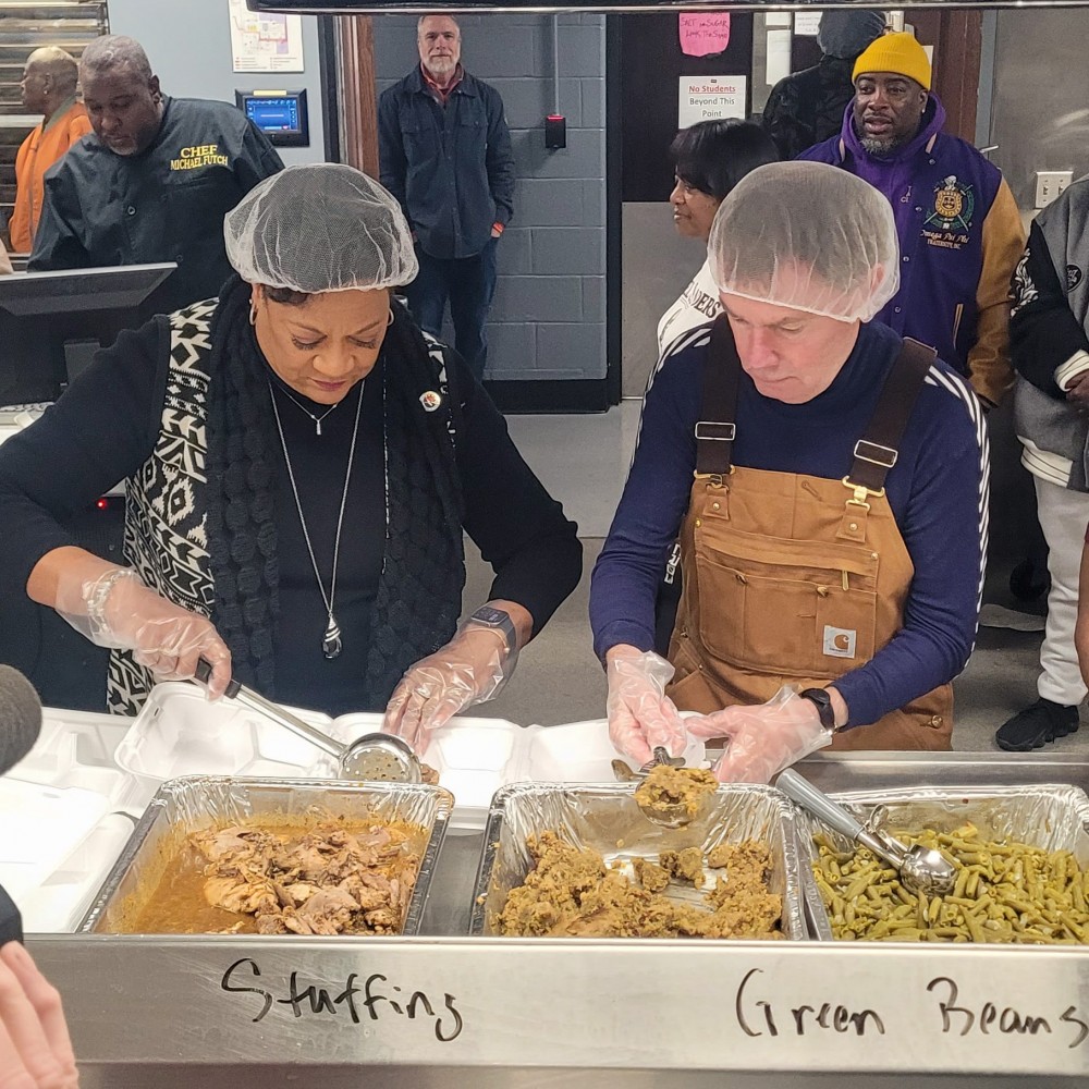 On Thanksgiving morning, Mayor Deb Whitfield joined Indianapolis Mayor Joe Hogsett at Ivy Tech to help prepare meals donated by the Mozel Sanders Foundation, Inc.