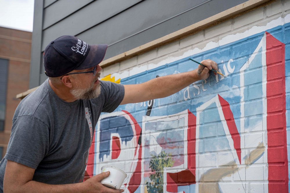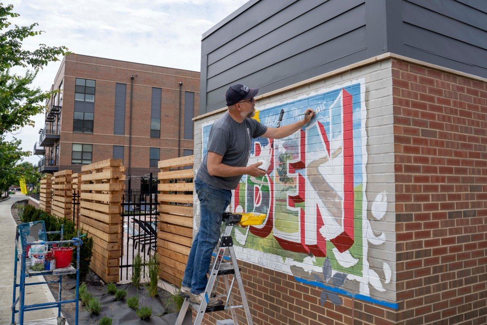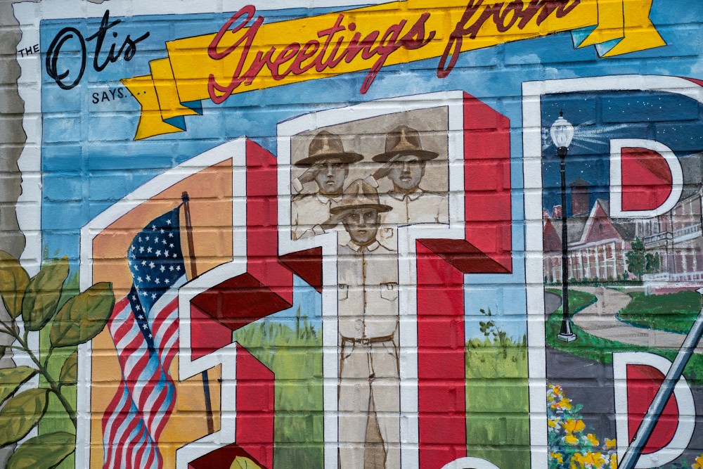 Created by Chris Blice and Jon Edwards of Blice Edwards Mural Company, this 2021 piece celebrates the military history and natural beauty of Fort Ben.