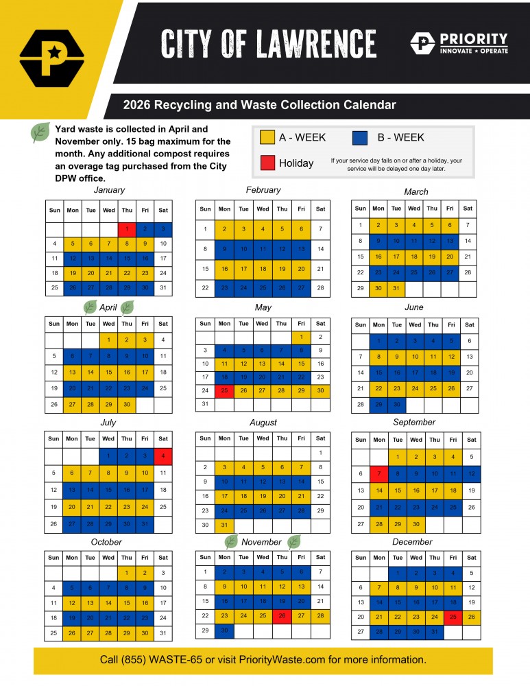 Priority Waste has released the 2026 Trash & Recycling Pickup Calendar for the City of Lawrence.