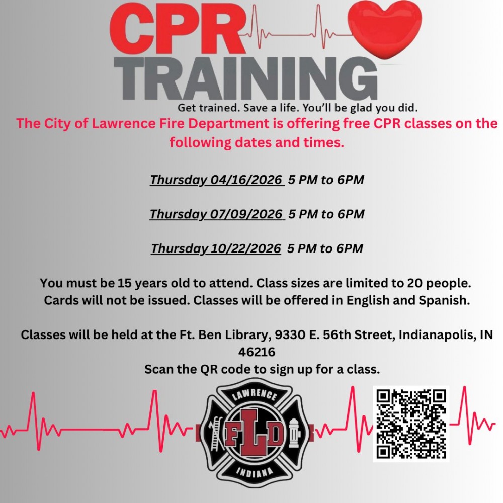 The City of Lawrence Fire Department is offering free CPR classes on the following dates and times.