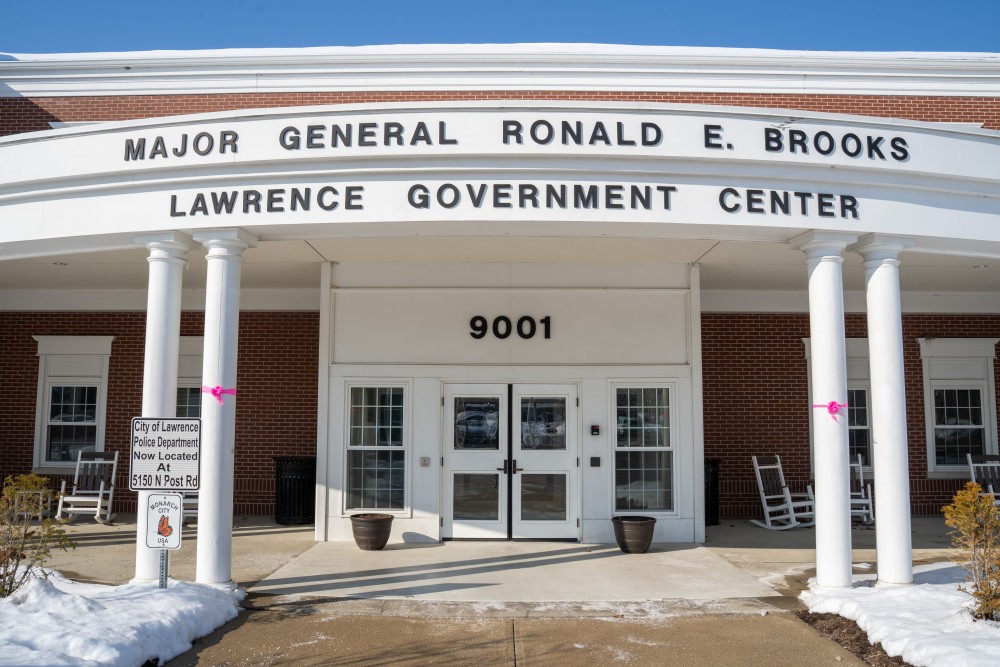 Pink bows have been placed on the columns of the Lawrence Government Center and at Civic Plaza as a visible sign of solidarity and love for Hailey.