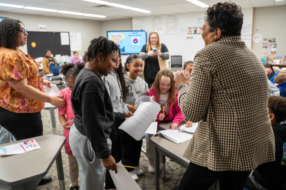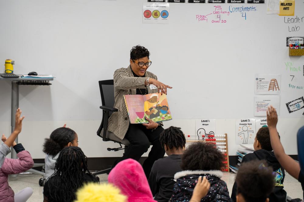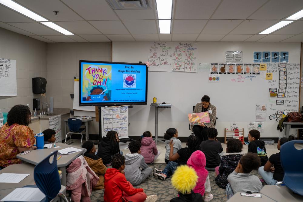 Mayor Deb Whitfield visited Mary Castle Elementary School to read Thank You, Omu! by Oge Mora — a heartwarming story about generosity, gratitude, and community.