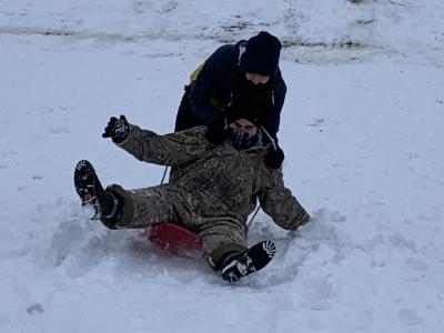 Residents enjoy weekend snow at Fort Harrison State Park