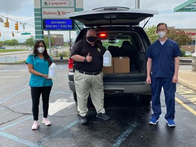 Dr. Aziz Staff Donate 10 Gallons of Hand Sanitizer to LPD
