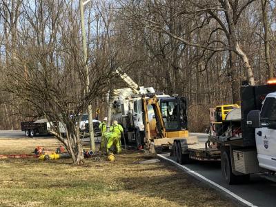 Utilities crew installs new water hydrant
